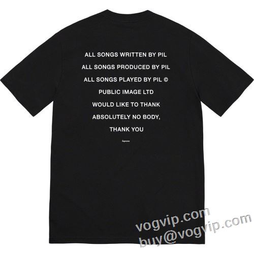 2024春夏 当店ランキング1位常連 シュプリーム Supreme PiL Tee 半袖Tシャツ 流行に関係なく長年愛用できる 3色可選 ▼コメント▼ VOGVIP.COM へようこそ。 ▲新規会員登録された方に色々な割引サービスを差し上げます。 ▲当店ではご注文日から翌営業日までに当店よりお客様宛てに必ずご注文のお礼メール・ご注文確認メールを送信させて頂いております。 ▲当店メールアドレスが届いていないお客様の中には、サーバーにて迷惑メールと判断され、迷惑メールフォルダにメールが届。 ▲もし本当に届かなかった場合にはbuy@vogvip.comまでご連絡くださいませ。