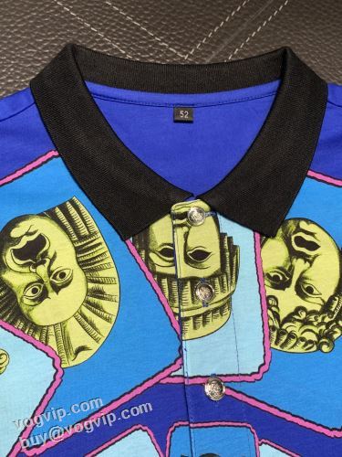 著名人の着用 VERSACE 半袖ポロシャツ 2024年モデル入荷 自然な肌触り ヴェルサーチスーパーコピー 激安