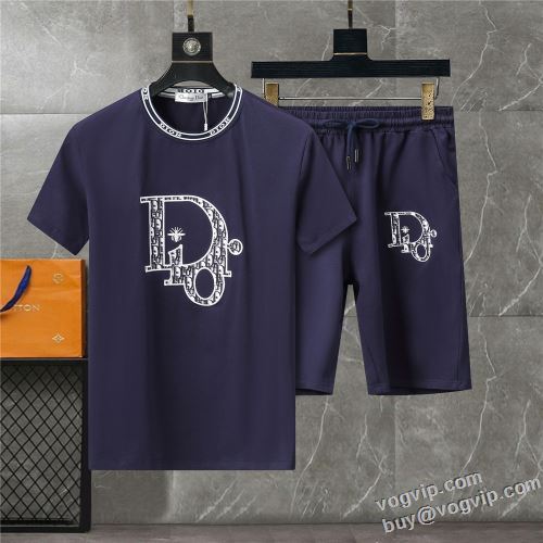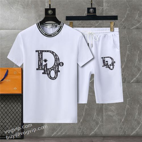 最旬アイテム 2024年モデル入荷 ディオール DIORブランド コピー 上下セット 吸汗 速乾 カジュアル 涼しい 快適 半袖Tシャツ 3色可選