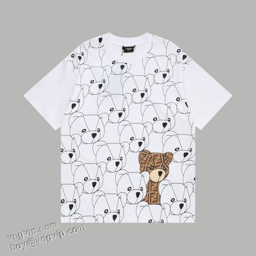 大人の個性を コピー 2024夏季 フェンディ FENDI 丸首 プリント 夏 ゆったり トップス 半袖Tシャツ 2色可選