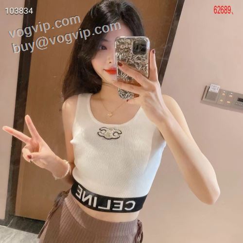 セリーヌ 今からの季節にピッタリ! CELINE ブランド コピー 販売 2024夏季 レディース ニット タンクトップ 2色可選