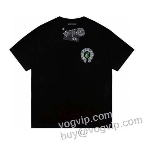 おしゃれに絶大な人気の ブランド コピー クロムハーツ 縦には伸びにくい CHROME HEARTS 半袖Tシャツ 2色可選 2024爆買い新作登場