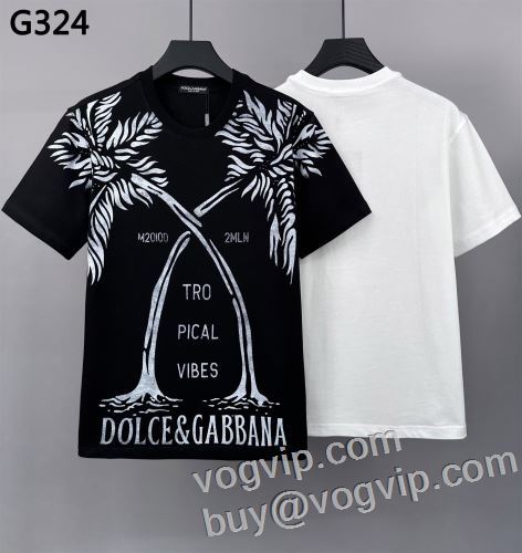 魅惑 スーパーコピー優良サイト ドルチェ&ガッバーナ Dolce&Gabbana 縦には伸びにくい 半袖Tシャツ 2色可選 2024お買い得高品質