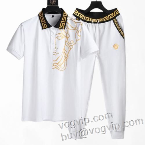 超人気美品◆ 2024HOT新作登場 人気スーパーコピーブランド ヴェルサーチ VERSACE 吸汗性に優れ 半袖Tシャツ 上下セット 2色可選