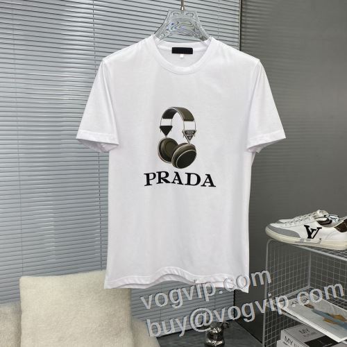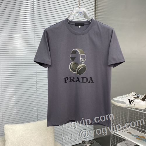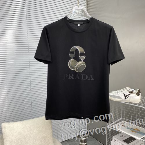 人気が爆発 2024最新入荷 半袖Tシャツ ブランド服 コピー プラダ PRADA クールビズ 3色可選