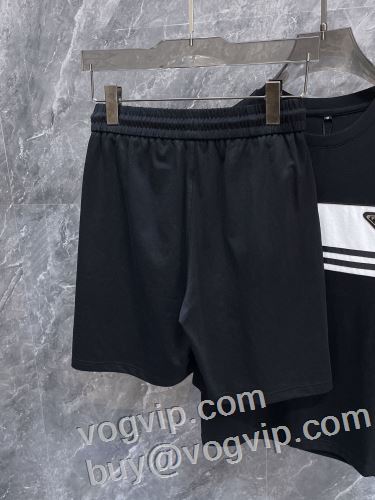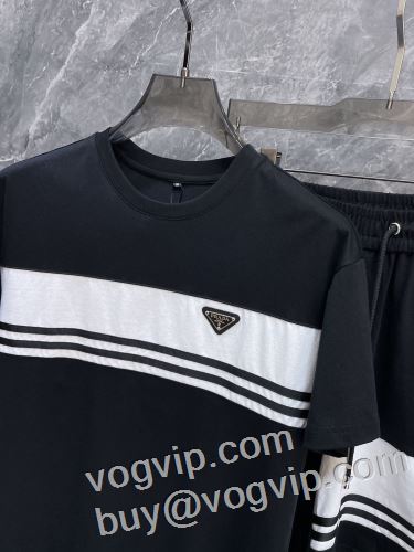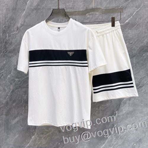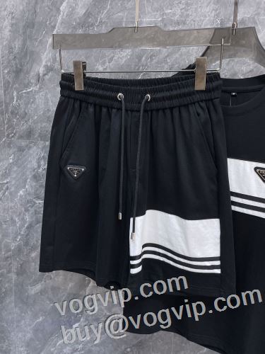 日本未入荷モデル プラダブランドコピー PRADA 暖かみのある肌触り 2024超激得100%新品 半袖Tシャツ 上下セット 2色可選