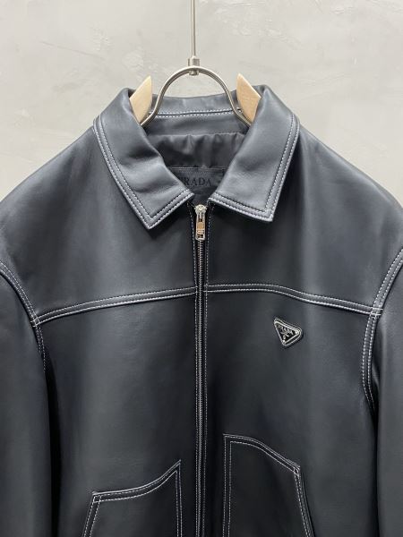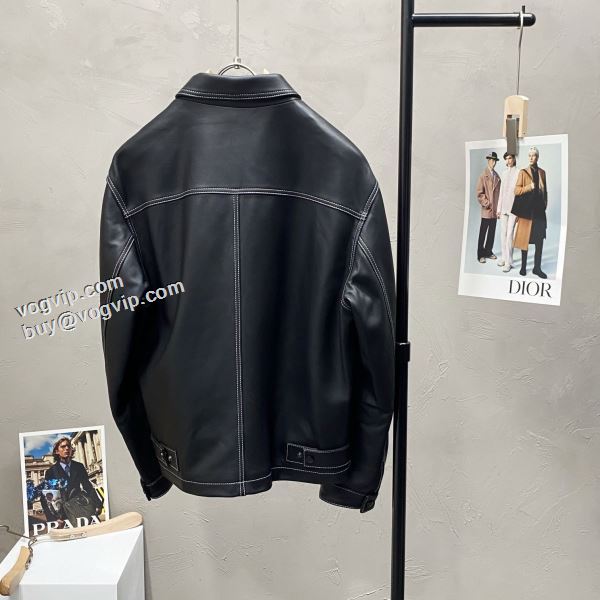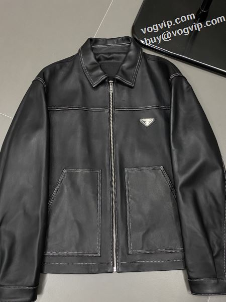 プラダ 偽物ブランド 洗練を十分に演出する 革ジャケット 2024秋冬季新作 ブルゾン ジャケット 様々なシーンで活躍できる万能ブルゾン 高品質