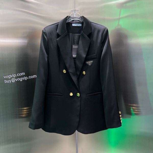レディース 可愛く上品な雰囲気 ブルゾン ダブルスーツ プラダ PRADAブランド コピー 2024秋冬新作 2色可選