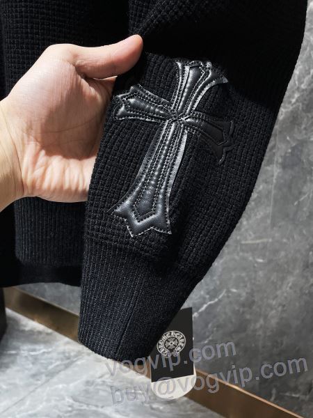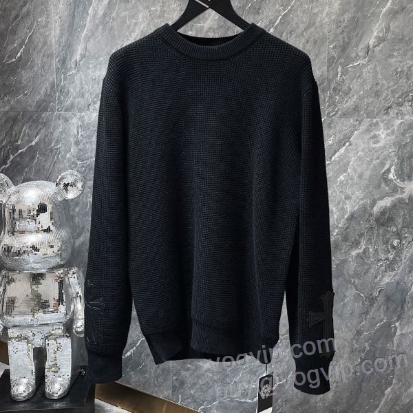 ランキング商品 クロムハーツ ブランドスーパーコピー ニット 無地 暖かい 防寒 おしゃれ プルオーバー トップス 厚手 セーター 2色可選 2024最新入荷