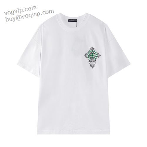 ブランド 偽物 通販 半袖Tシャツ 2024新款 縦には伸びにくい クロムハーツ CHROME HEARTS 2色可選 お洒落な存在感