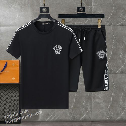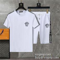 売れ筋のいい 2024春夏季超人気 ヴェルサーチ 肌に刺激がなくて VERSACEブランド コピー 半袖Tシャツ 上下セット 2色可選