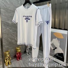 首胸ロゴ 半袖Tシャツ プラダ ブランド コピー 2024年モデル入荷 上下セット 2色可選