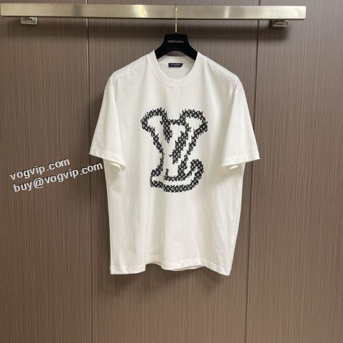 一番人気の新作はこれ ルイ ヴィトン 偽物ブランド 半袖Tシャツ 涼しい カジュアル 春 夏 薄手 Tシャツ 2色可選 2024割引セール