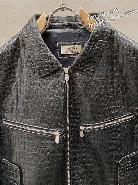海外セレブ定番愛用 2024秋冬 高品質 エルメス コピーブランド 革ジャケット 本革 艶やかなコート