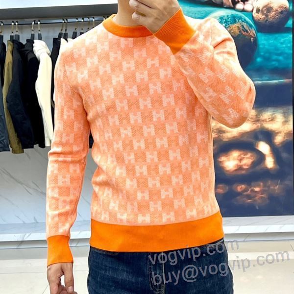 エルメス 2024最新入荷 ニット セーター HERMESスーパーコピー メンズ秋冬新作おしゃれプルオーバートップス 高級感演出